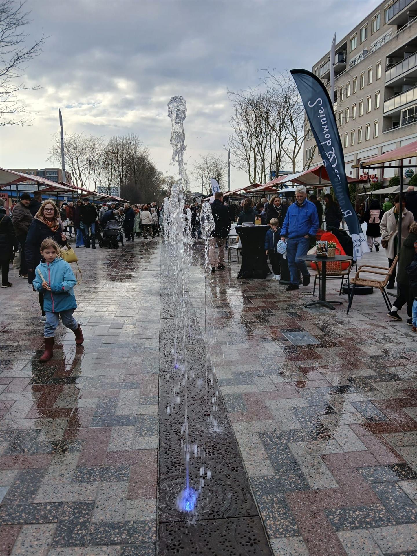Tijdens de opening werd ook de waterinstallatie van Rots Maatwerk in werking gesteld. In de zomermaanden zal deze installatie, in combinatie met de klinkers van Klostermann Beton, zorgen voor verkoeling en extra verblijfskwaliteit op het plein.
